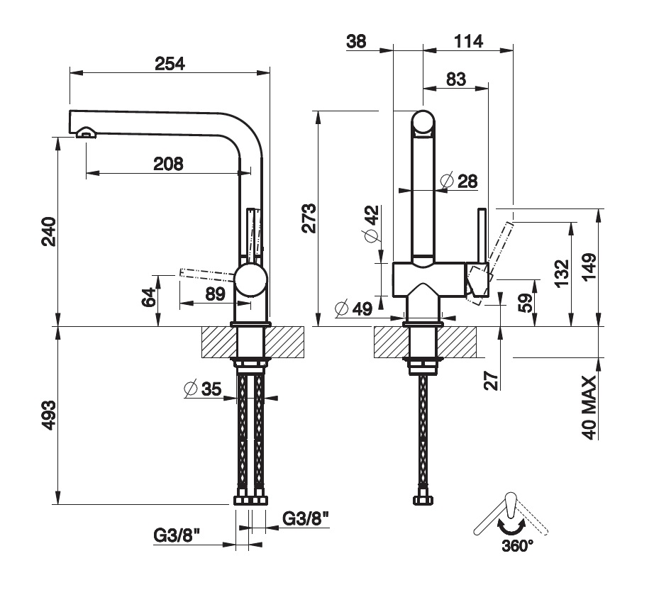 Gessi Acciaio Bateria kuchenna z obrotową wylewką Steel Brushed 60596.239