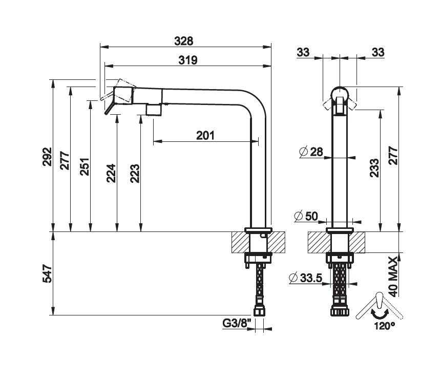 Gessi Fisso Bateria kuchenna jednootworowa Finox 60073.149
