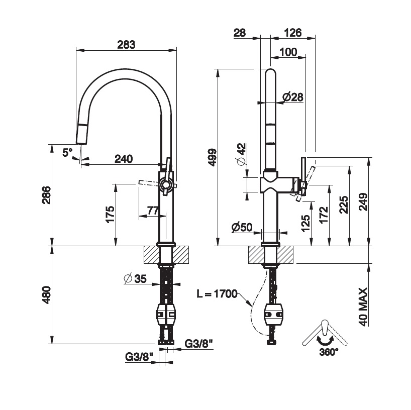 Gessi Habito Bateria kuchenna z obrotową i wyciąganą wylewką Chrom 60672.031