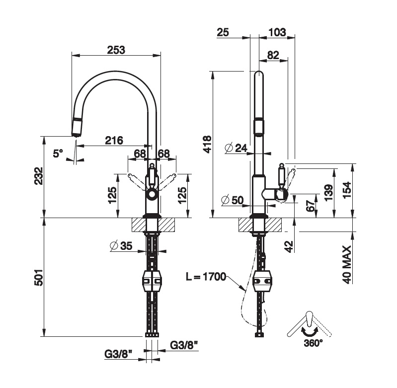 Gessi Venti20 Bateria kuchenna obrotowa z wyciąganą wylewką Chrom 60622.031