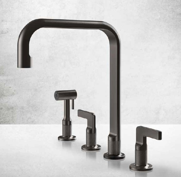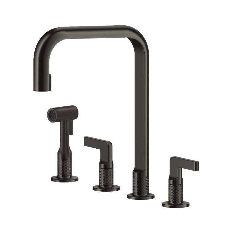 Gessi Inciso Bateria kuchenna 2-uchwytowa 4-otworowa Black Metal Brushed PVD 58703.707Wylewka obrotowa.
