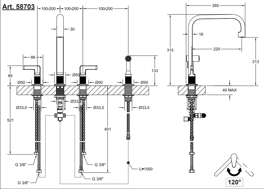 - Zasięg obrotu wylewki: 120º