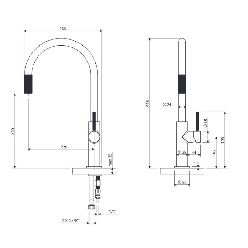 obrotowa dwudrożna wylewka z funkcją wody filtrowanej (funkcja dostępna po podłączeniu do zestawu filtrującego)