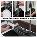 Wyciągana wylewka 3-funkcyjna z możliwością wyboru rodzaju strumienia. Wysuwany zasięg około 30-50 cm. Po naciśnięciu przycisków można dowolnie przełączać tryby. |