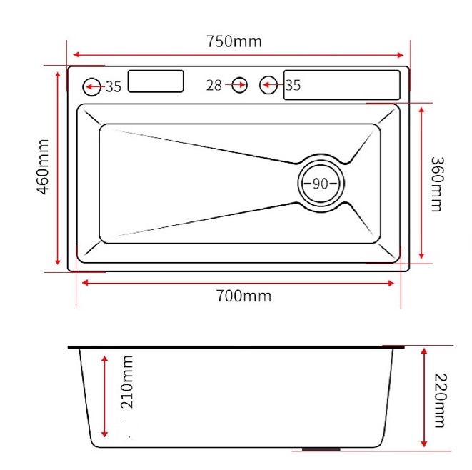 Przełącznik sterowania odpływem Po zakończeniu zmywania można użyć tego przełącznika do bezpośredniego spuszczenia wody bez wkładania rąk do brudnej wody, co zapewnia czystsze i wygodniejsze użytkowanie. Dno zlewozmywaka jest lekko nachylone, co ułatwia odprowadzanie wody. Odpływ z rurą spustową po prawej stronie pozwala zaoszczędzić miejsce w szafce. |