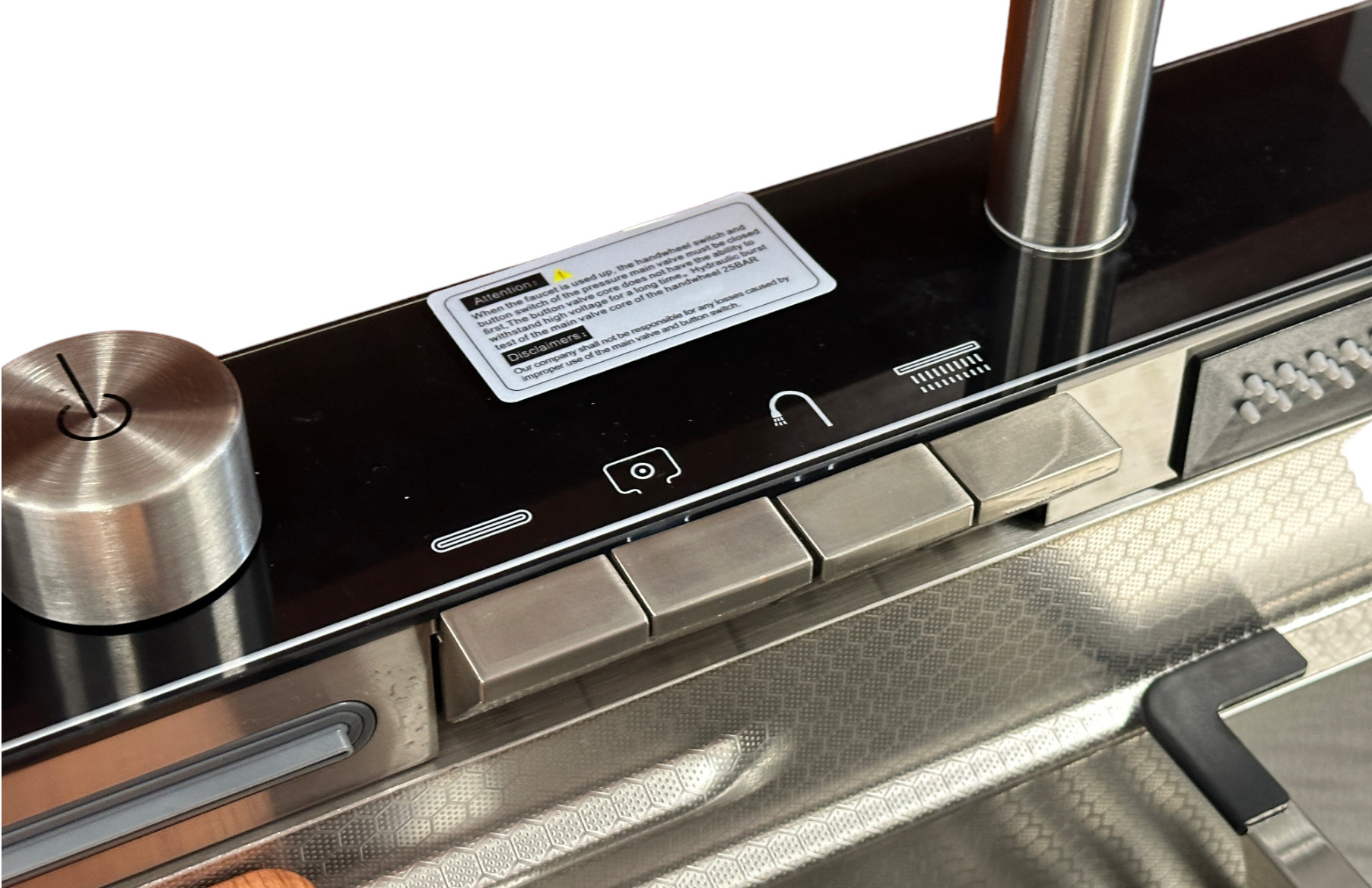 | 5 klawiszy Innowacyjna konstrukcja z ikonami na przyciskach do niezależnego sterowania kaskadą, myjką szklanek, głównym kranem, wodospadem i kranem wody uzdatnionej. Możesz dowolnie przełączać się między tymi pięcioma opcjami.(ZDJĘCIE POGLĄDOWE ) |