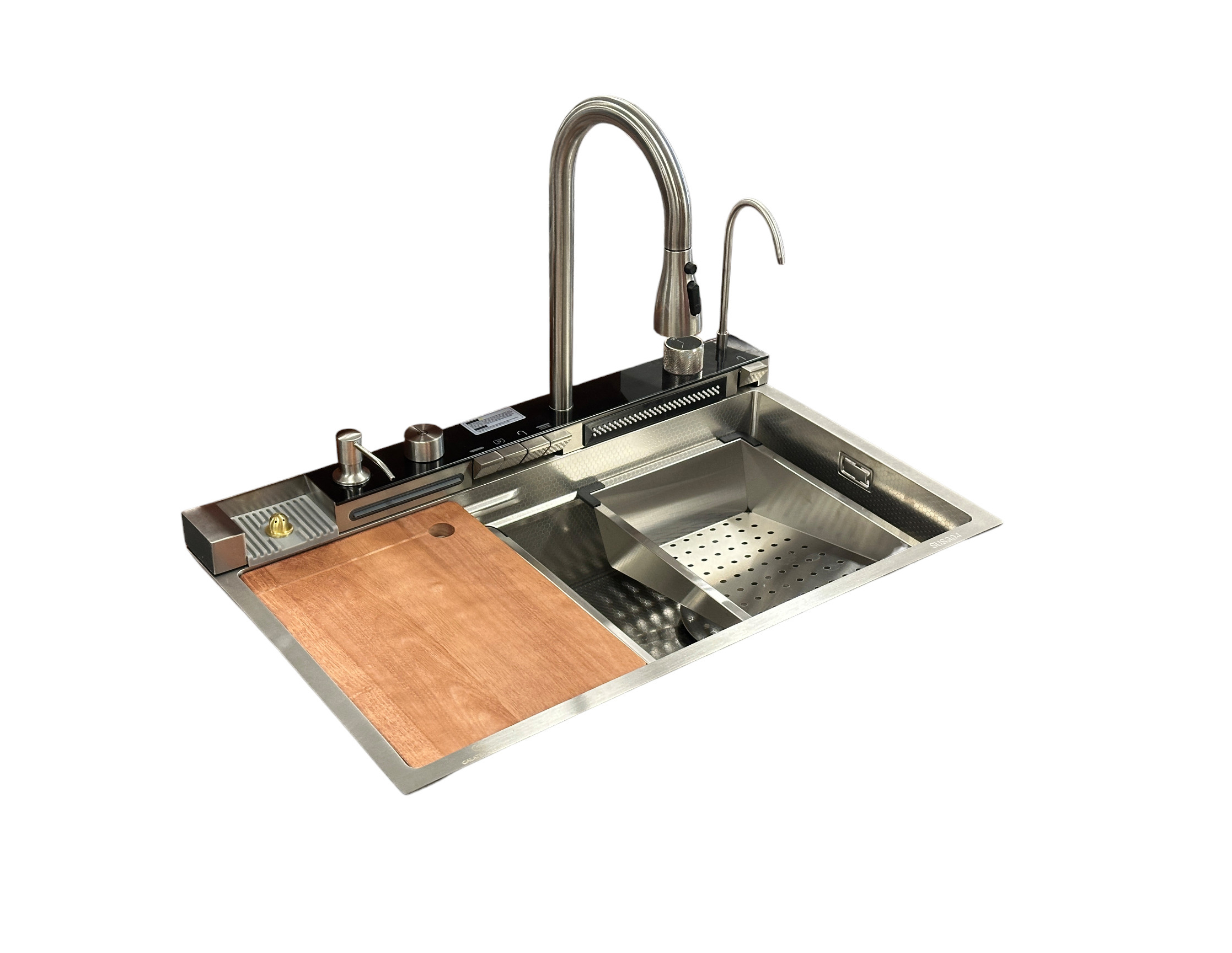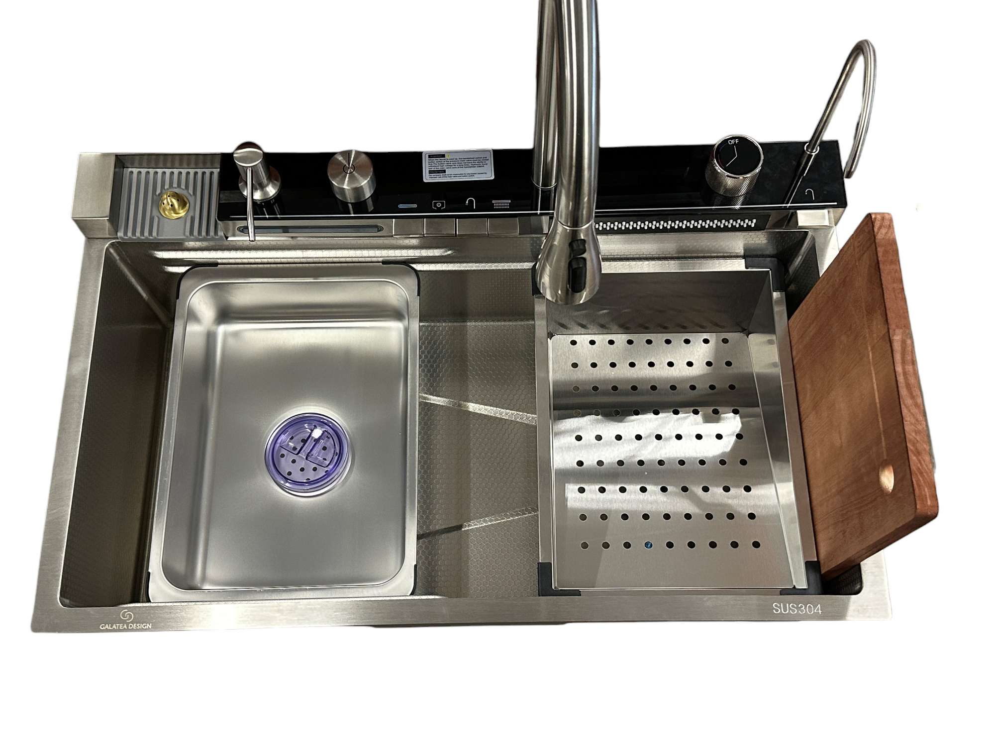 Galatea Design Modus S Zlew z wodospadem, myjką do szklanek, dozownikiem, bateria 3-funkcyjną ZESTAW 75x46 wpuszczany stainless steel GDP31IX