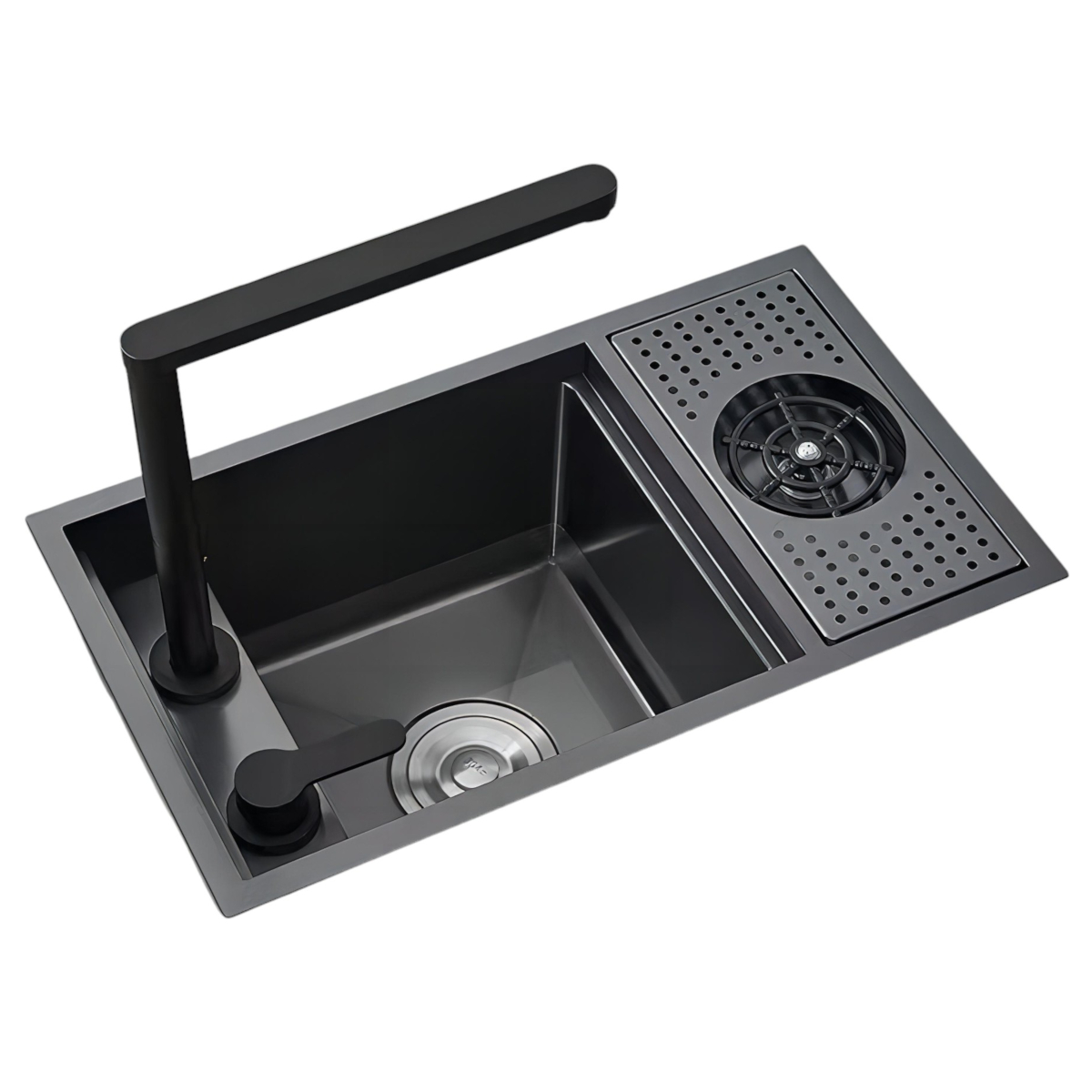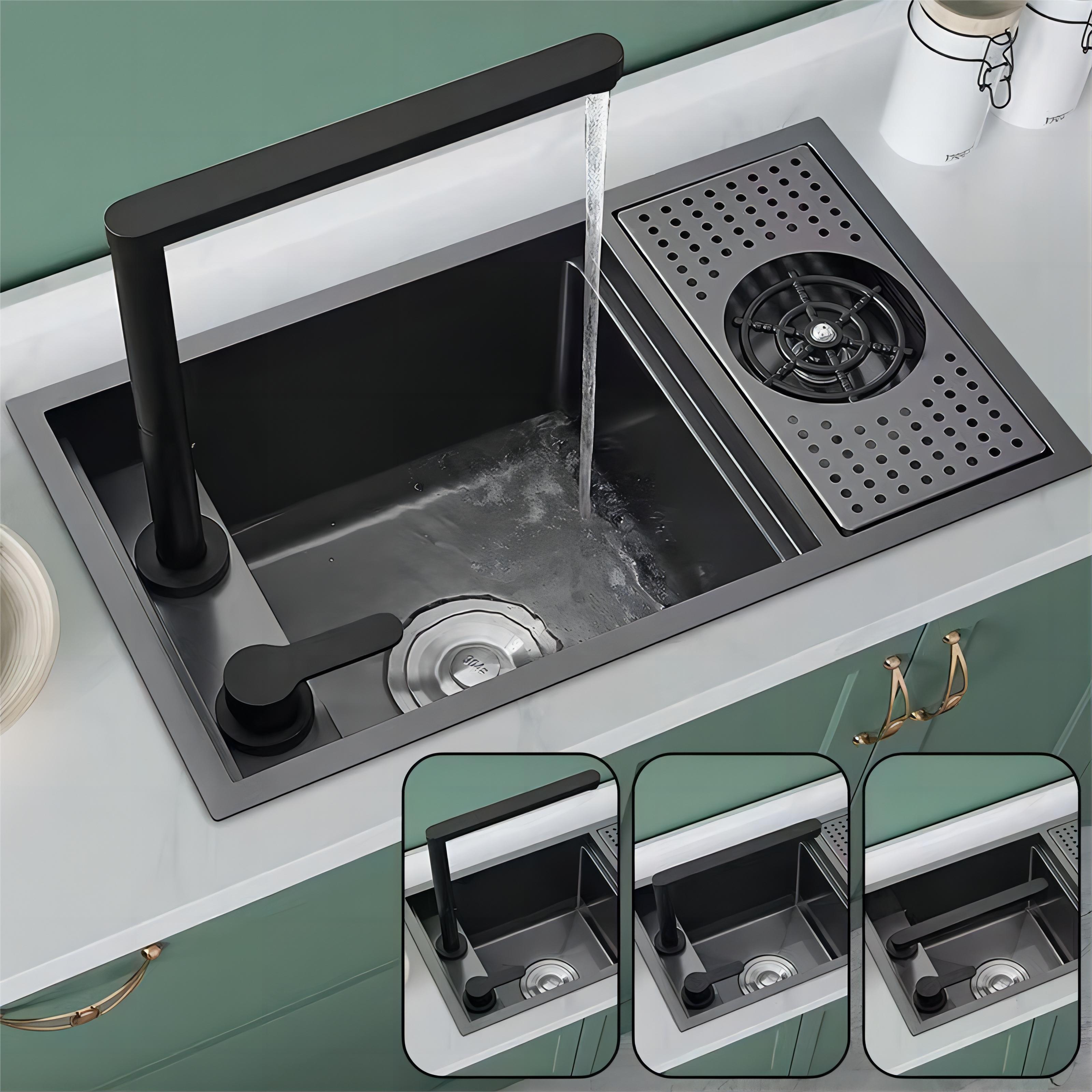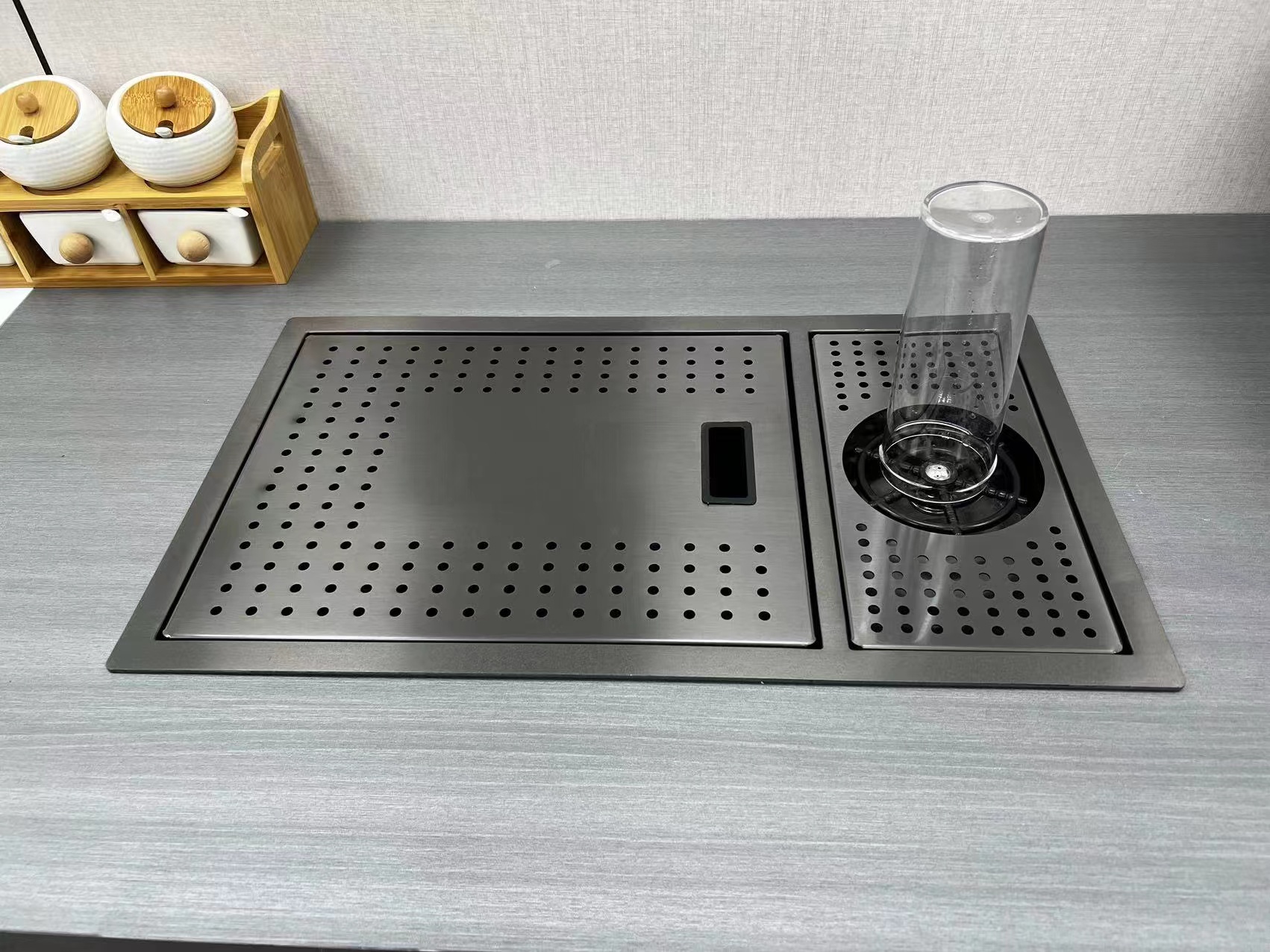Galatea Design Modus Up Zlew z myjką do szklanek, baterią teleskopową, deską blatową 60x40 wpuszczany gunmetal black GDP27GB