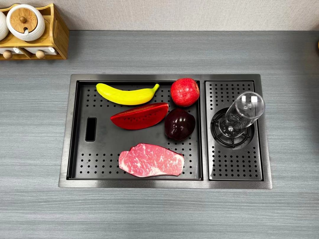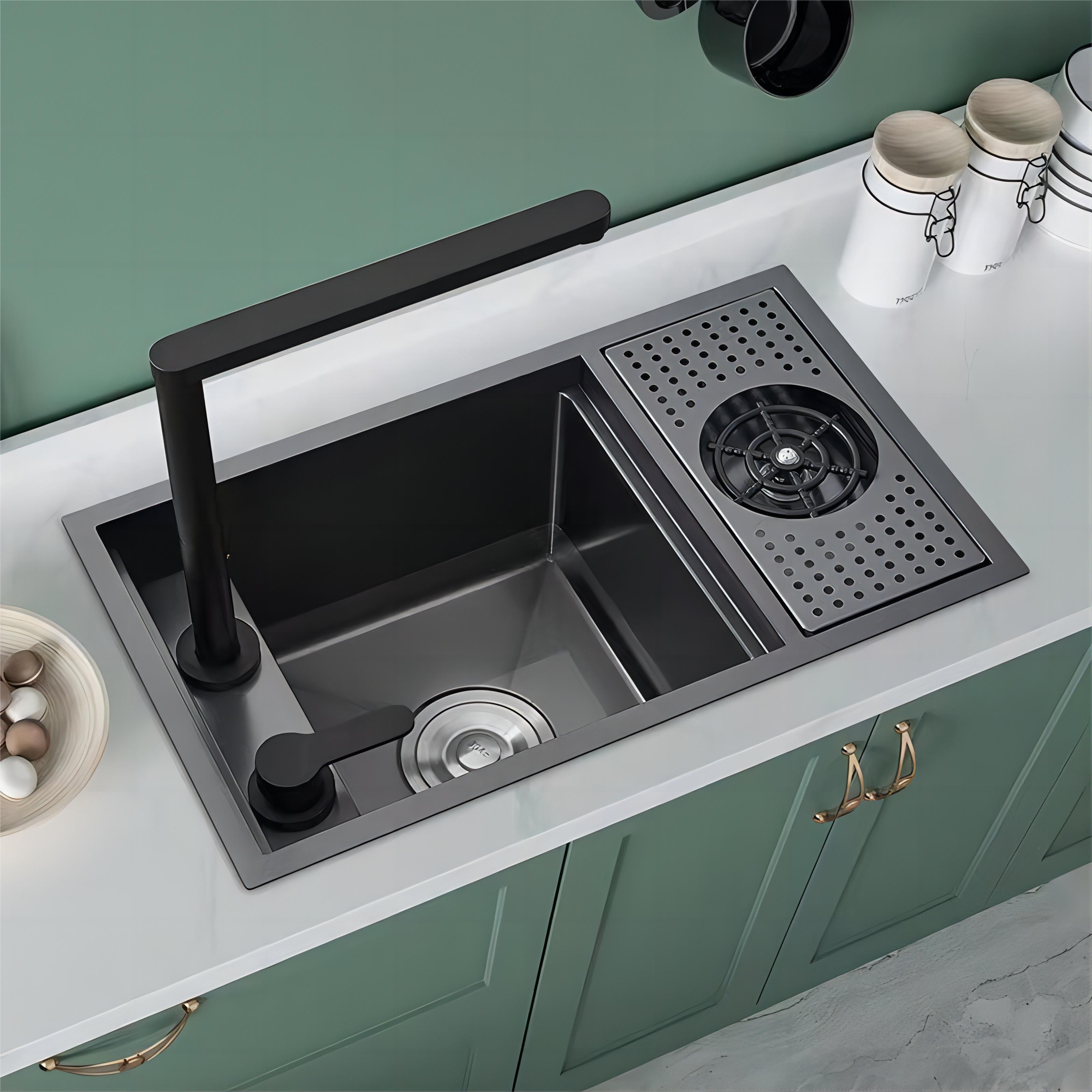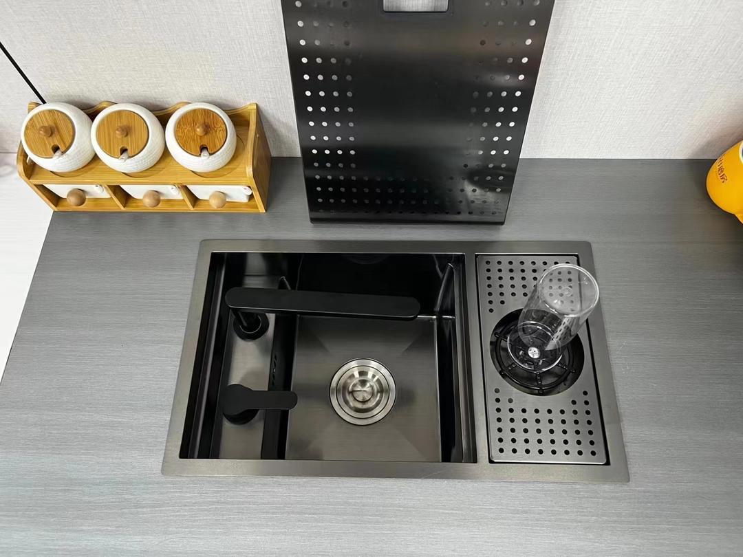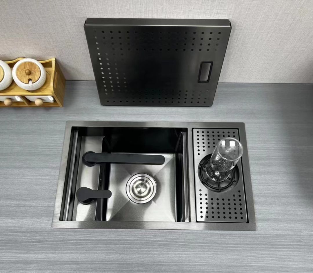 Galatea Design Modus Up Zlew z myjką do szklanek, baterią teleskopową, deską blatową 60x40 wpuszczany gunmetal black GDP27GB