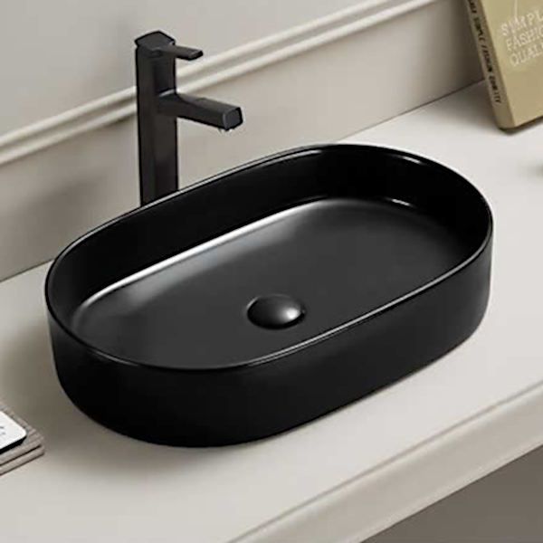 Galatea Design Bujur Umywalka 60x38 z korkiem klik-klak czarny mat/black matt GD78330DTMB W MAGAZYNIE!!