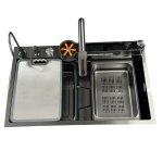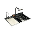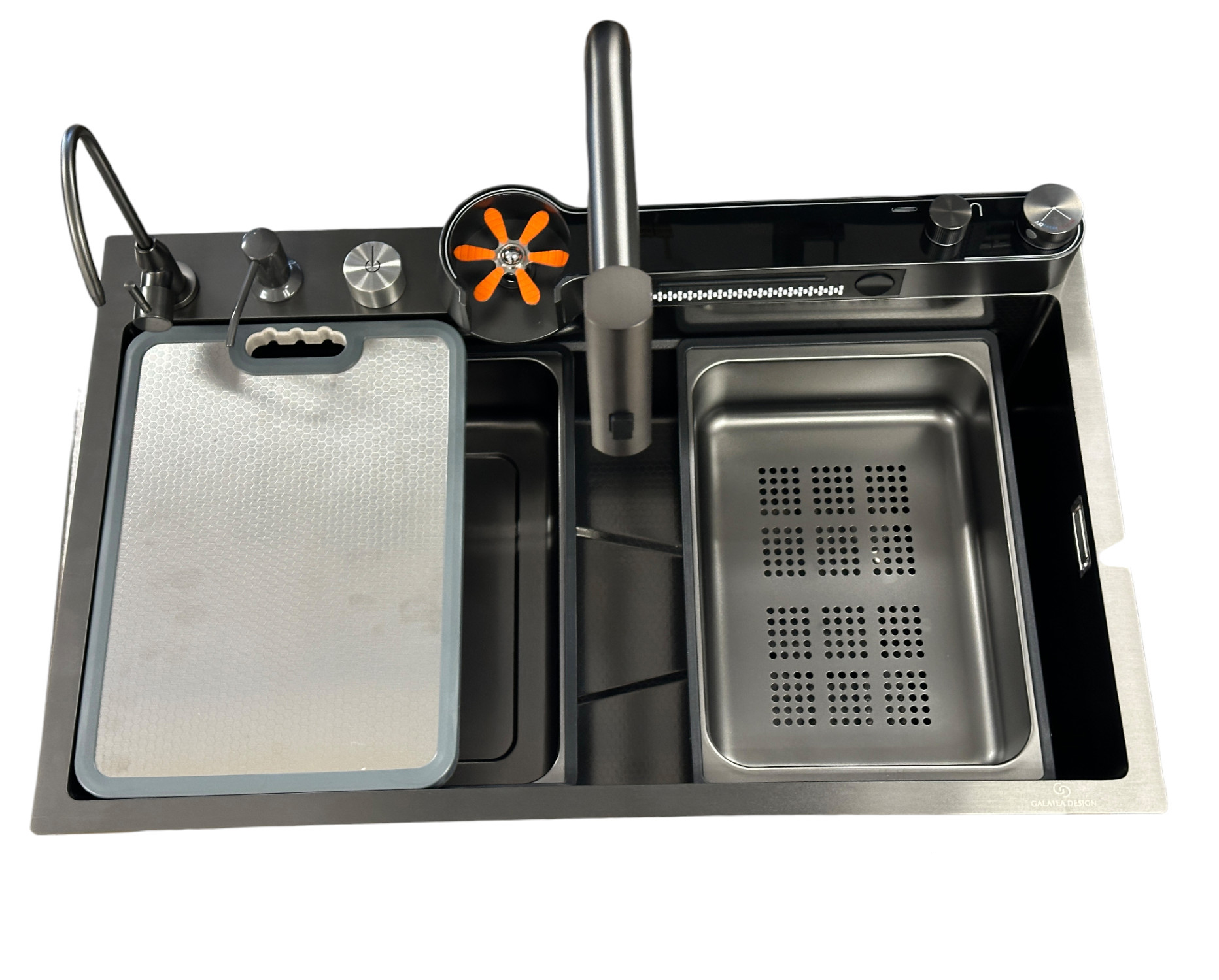 Galatea Design Modus E Zlew z wodospadem, myjką do szklanek, dozownikiem, bateria 3-funkcyjną ZESTAW 75x45 wpuszczany Gunmetal Black GDP40GB