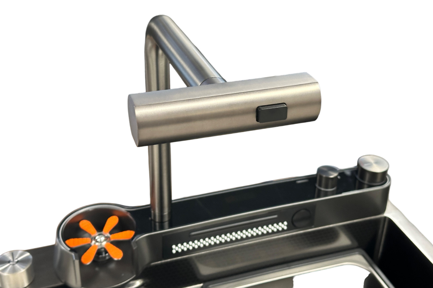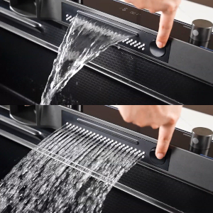 Wyciągana wylewka 3-funkcyjna z możliwością wyboru rodzaju strumienia. Wysuwany zasięg około 30-50 cm. Po naciśnięciu przycisków można dowolnie przełączać tryby. |