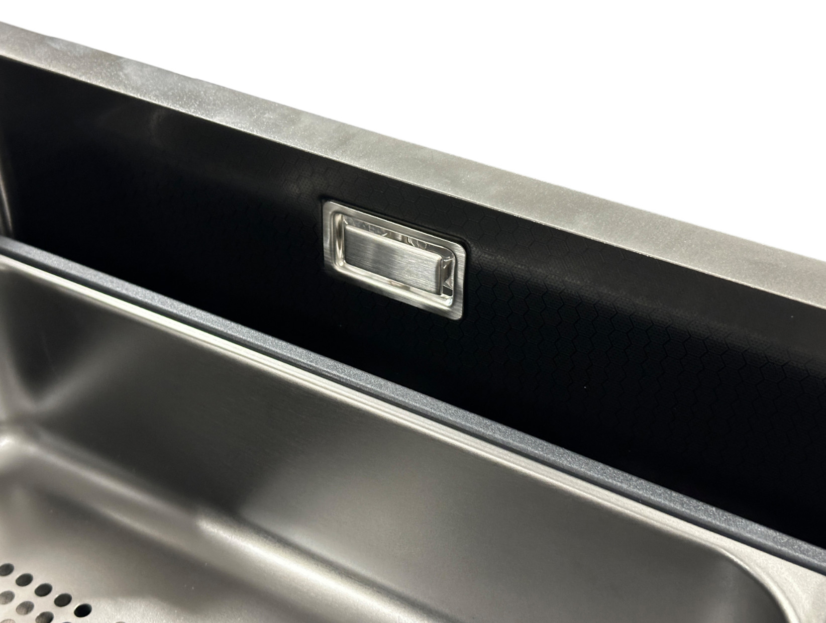 Przełącznik sterowania odpływem Po zakończeniu zmywania można użyć tego przełącznika do bezpośredniego spuszczenia wody bez wkładania rąk do brudnej wody, co zapewnia czystsze i wygodniejsze użytkowanie. Dno zlewozmywaka jest lekko nachylone, co ułatwia odprowadzanie wody. Odpływ z rurą spustową po prawej stronie pozwala zaoszczędzić miejsce w szafce. |