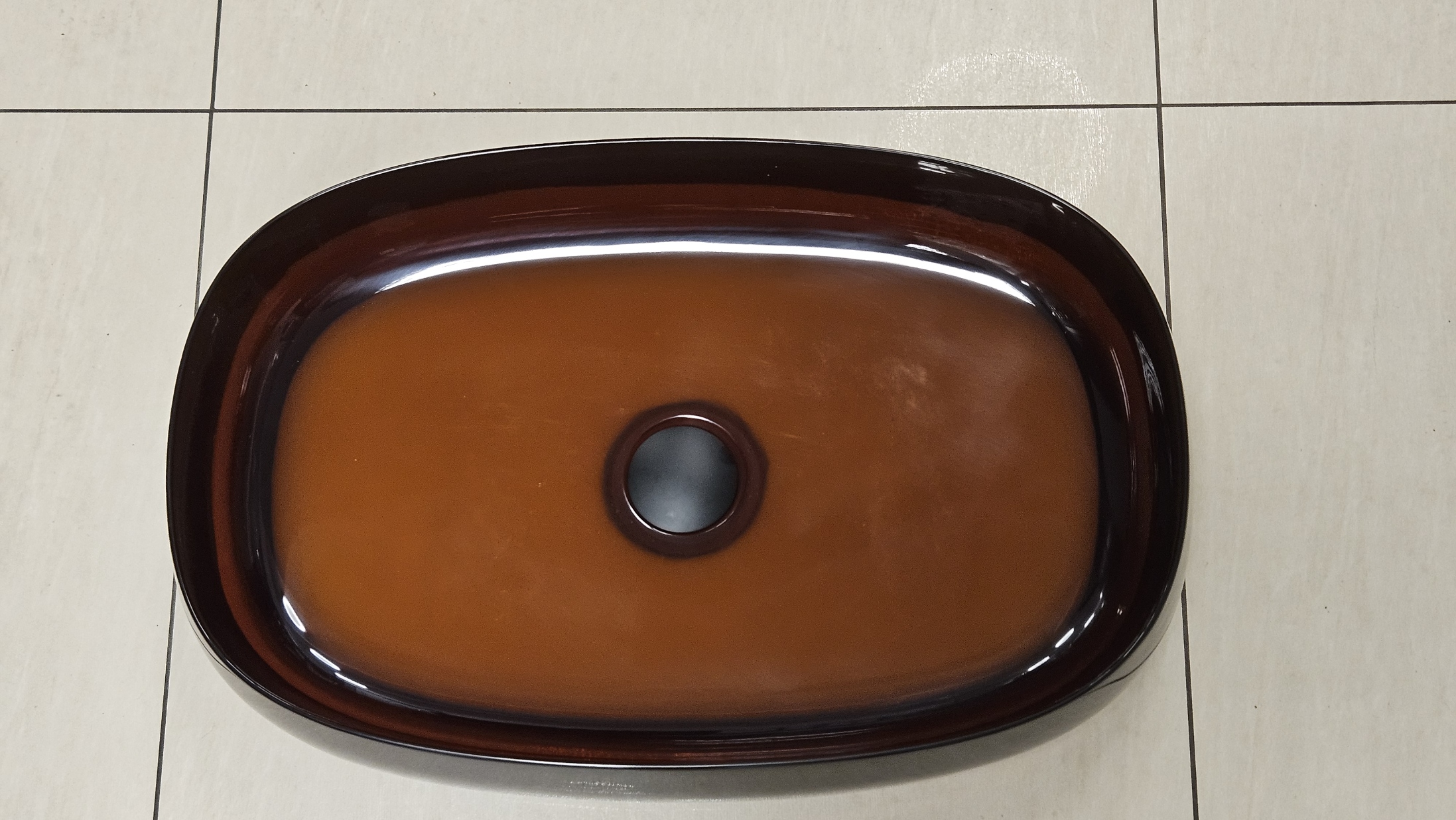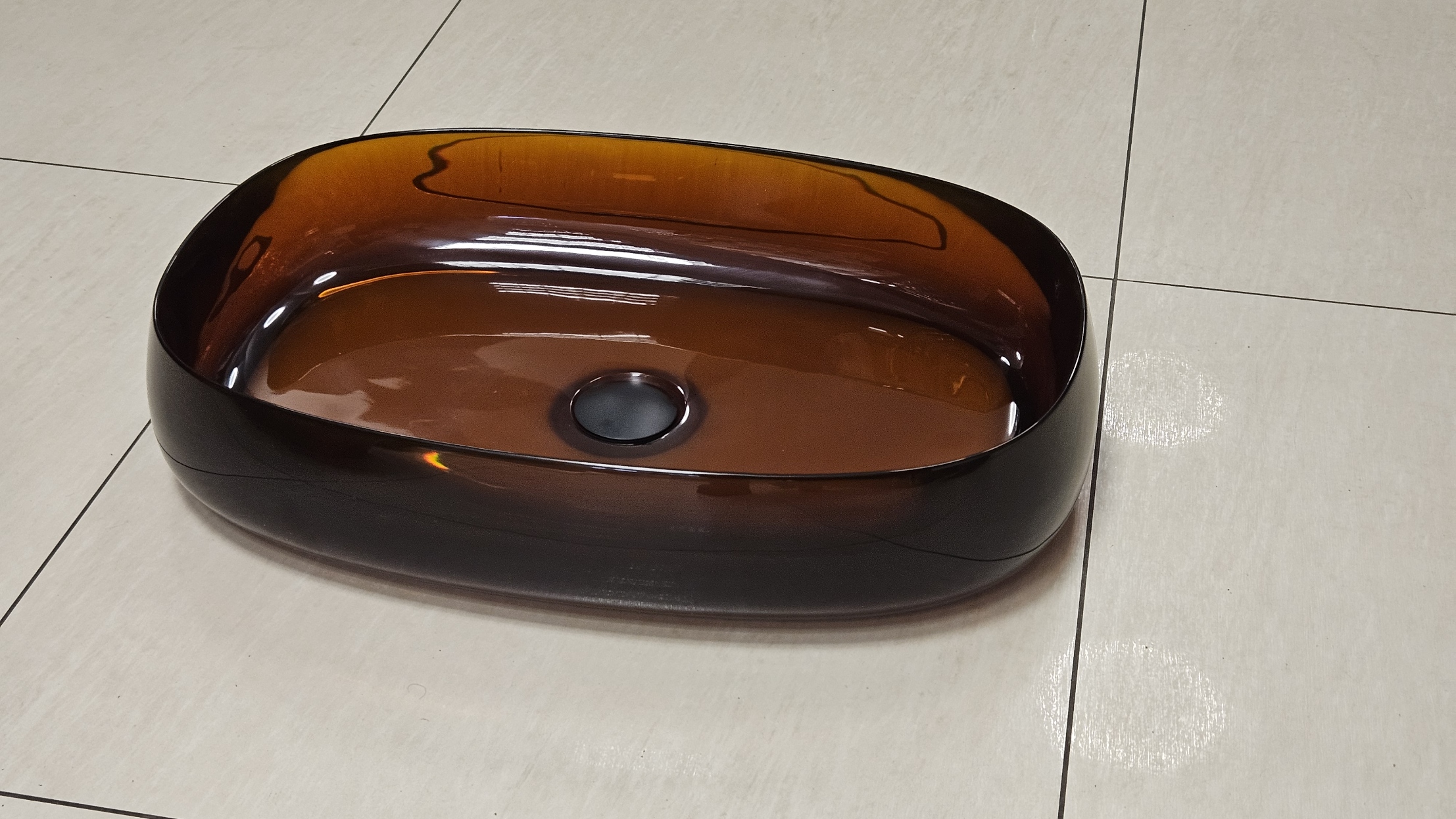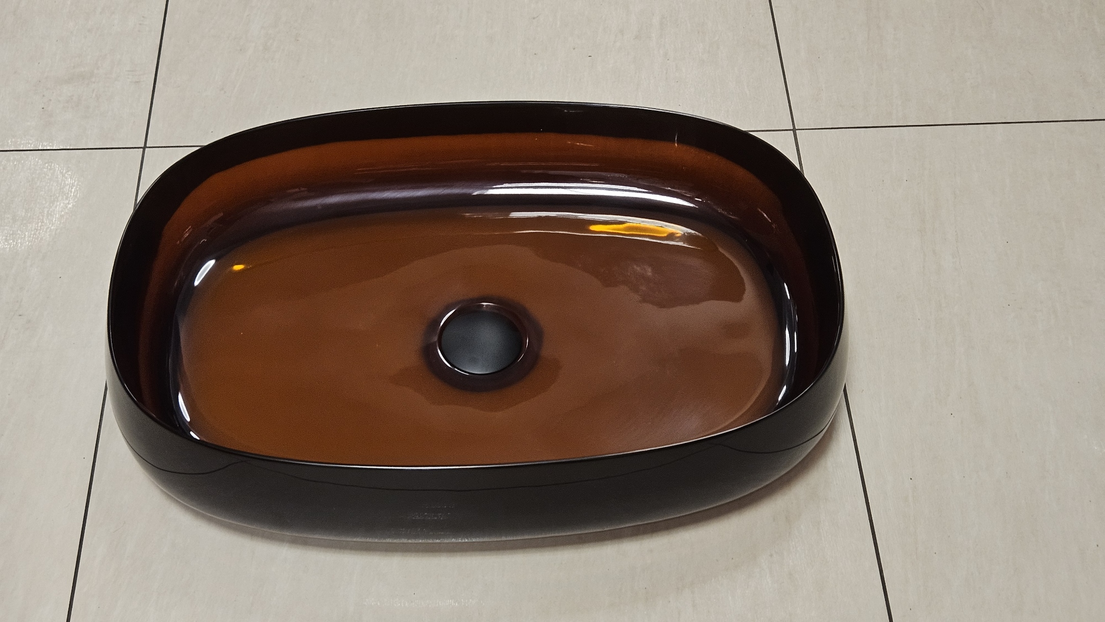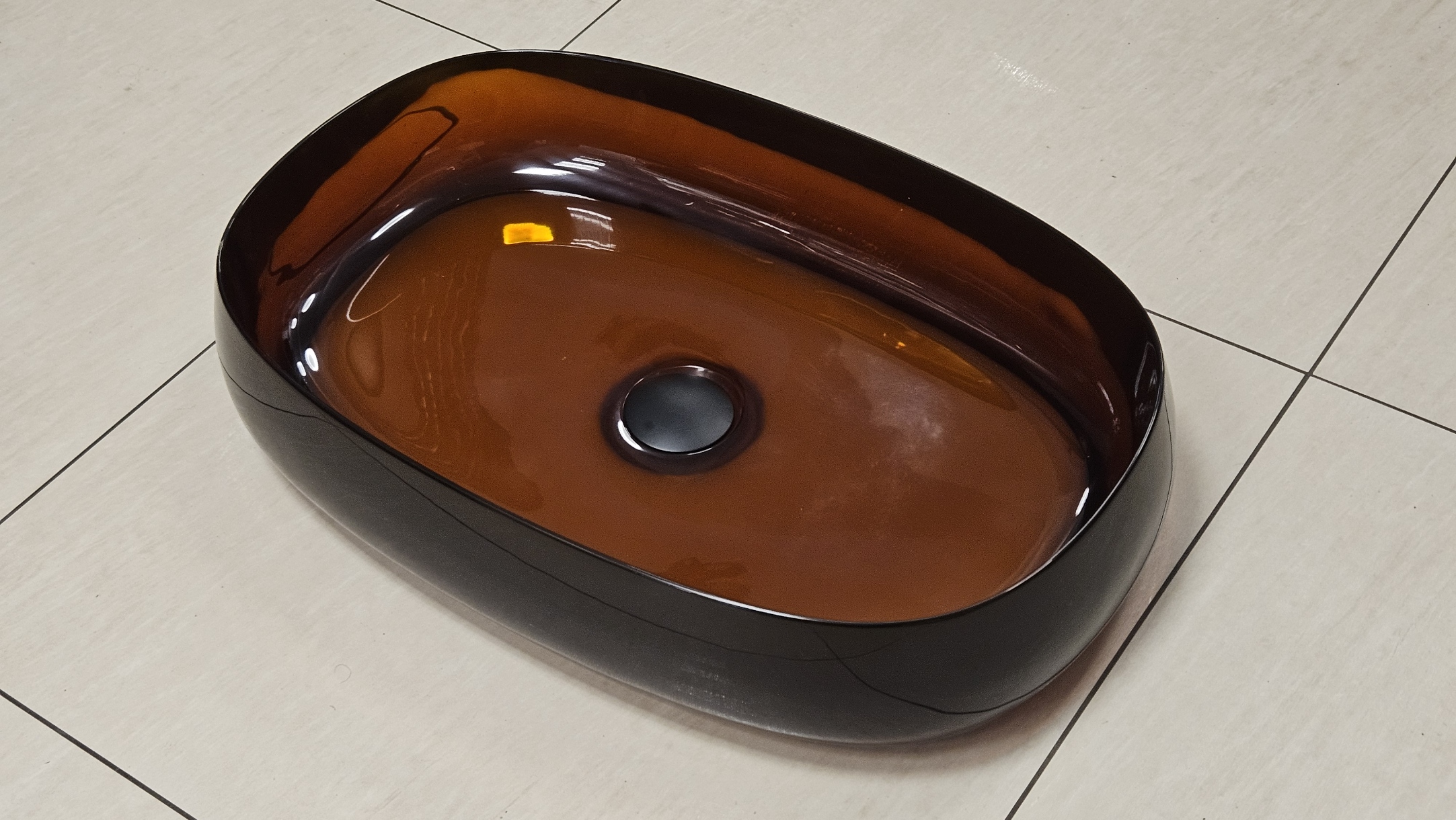 Galatea Design Paddle Umywalka stawiana na blat 58x38 Dark Brown z korkiem klik-klak czarny mat GDFU2007DB