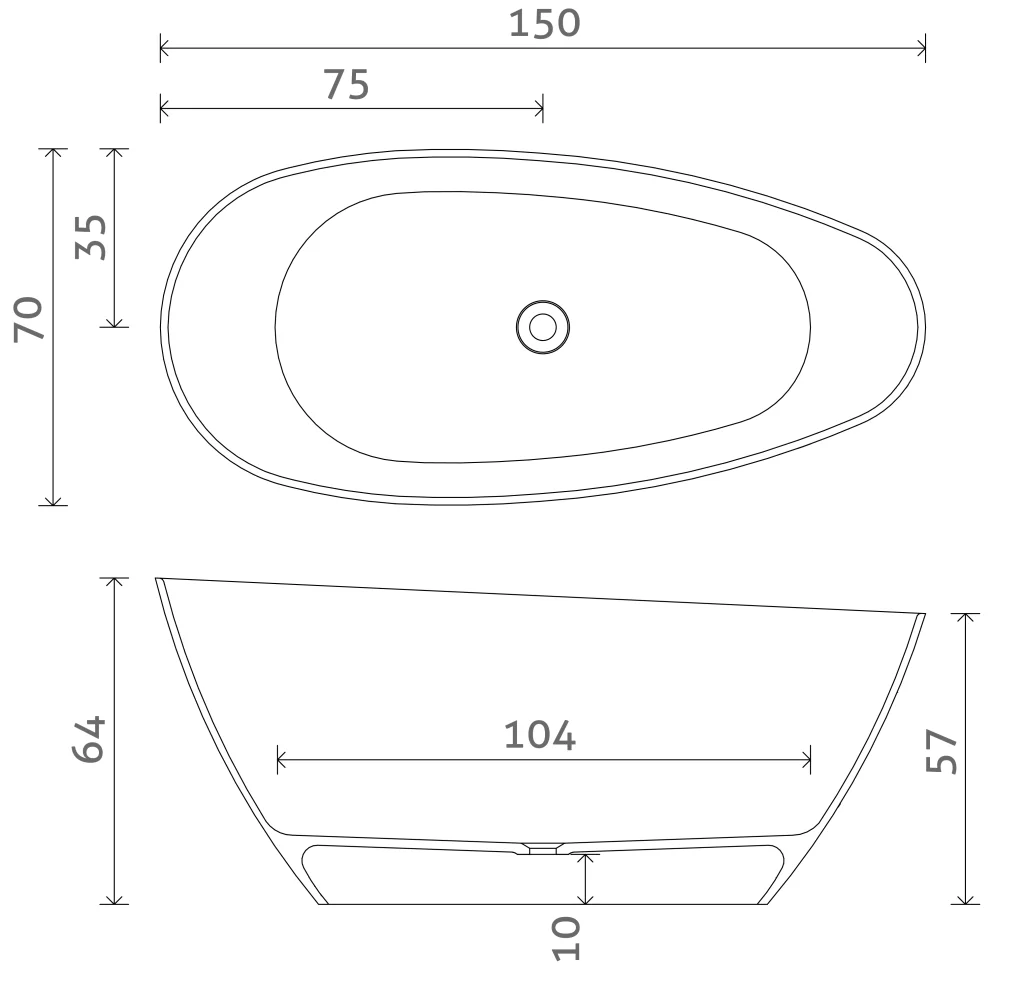 Inbalia Ibiza Wanna wolnostojąca 155x70 biały połysk z korkiem klik klak chrom BTIS00042C00G110I