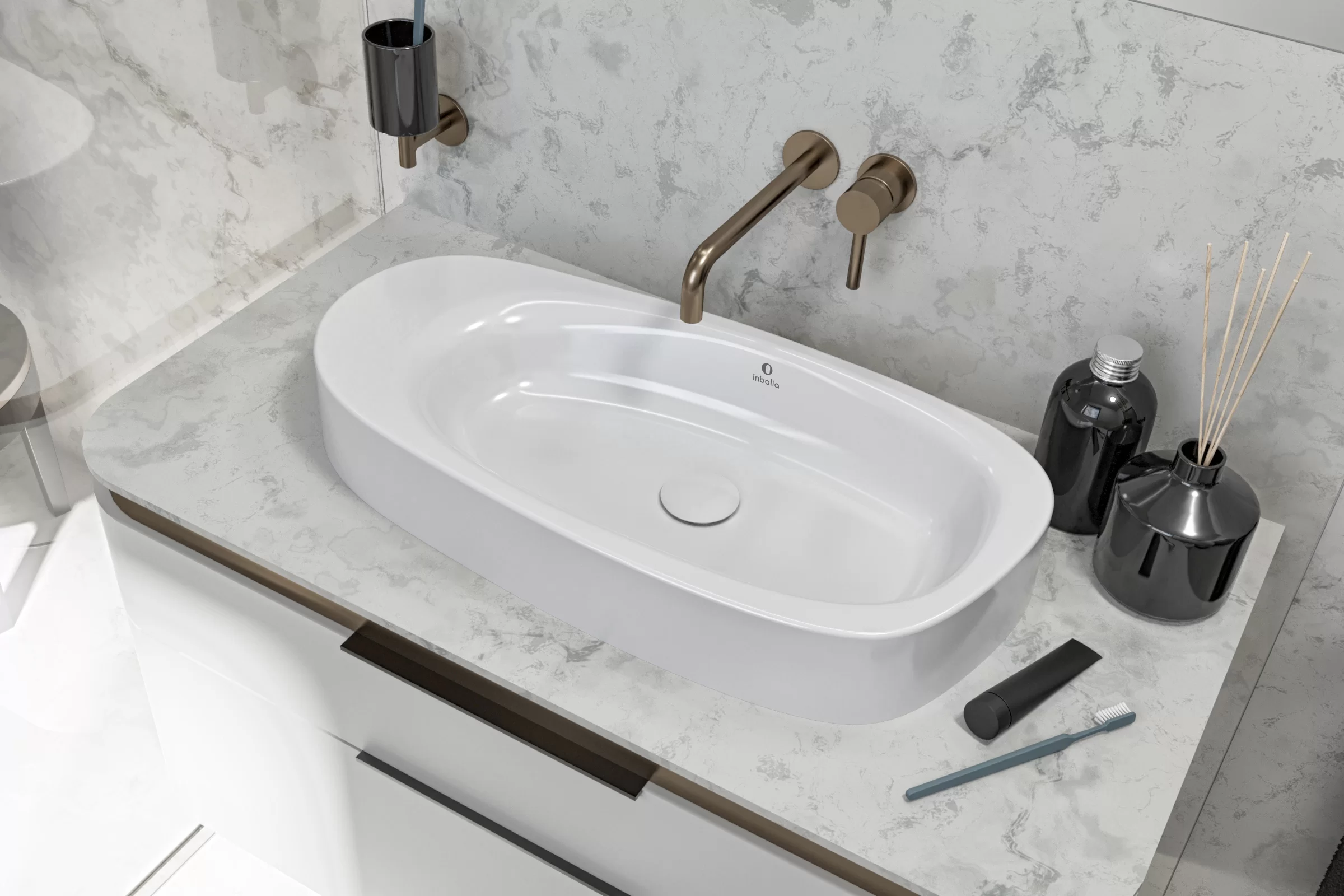 Inbalia Elba Umywalka nablatowa 70x30 biały połysk WBOC00054C00G110I