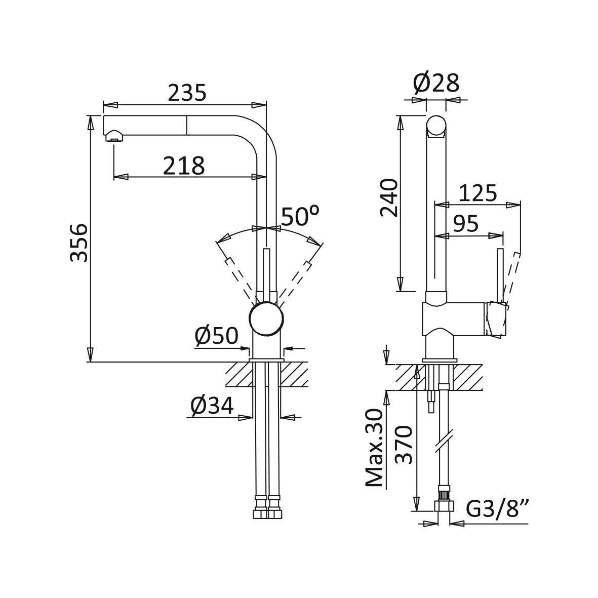 Długość wylewki: 218 mm