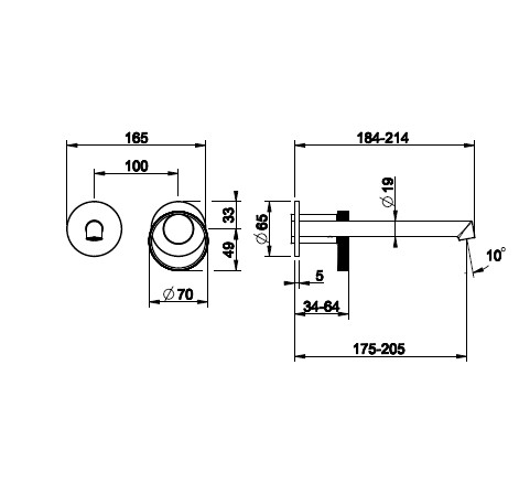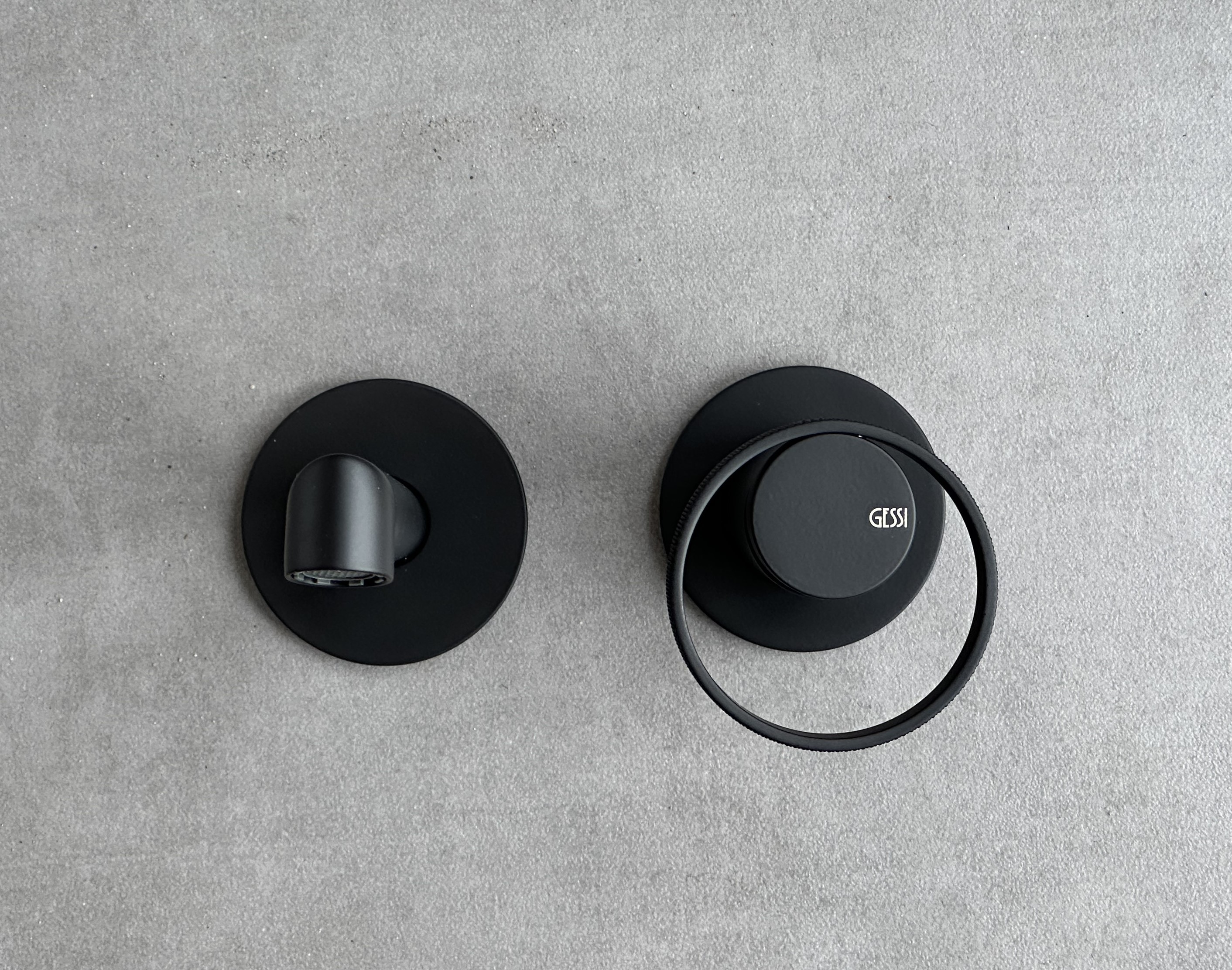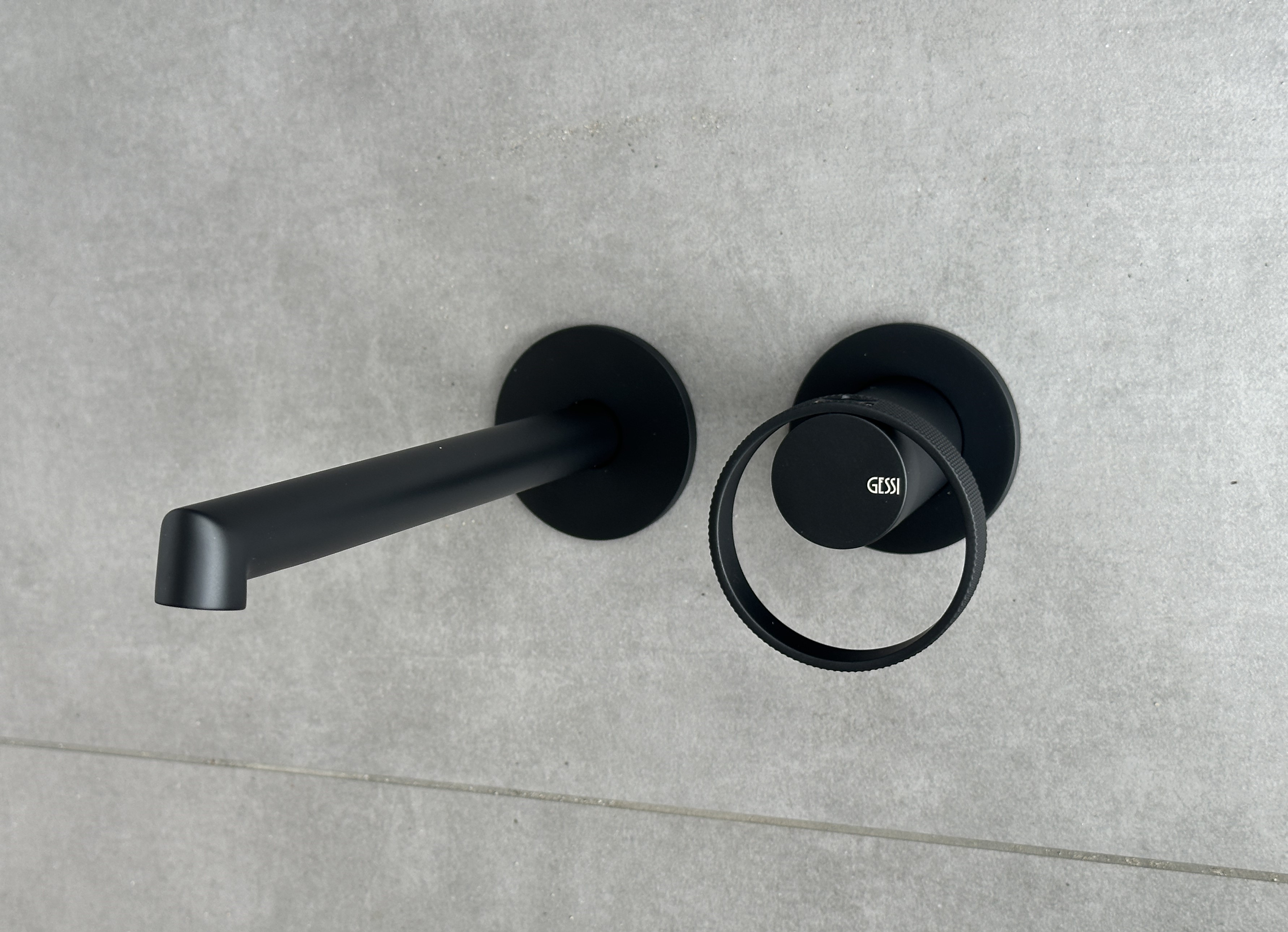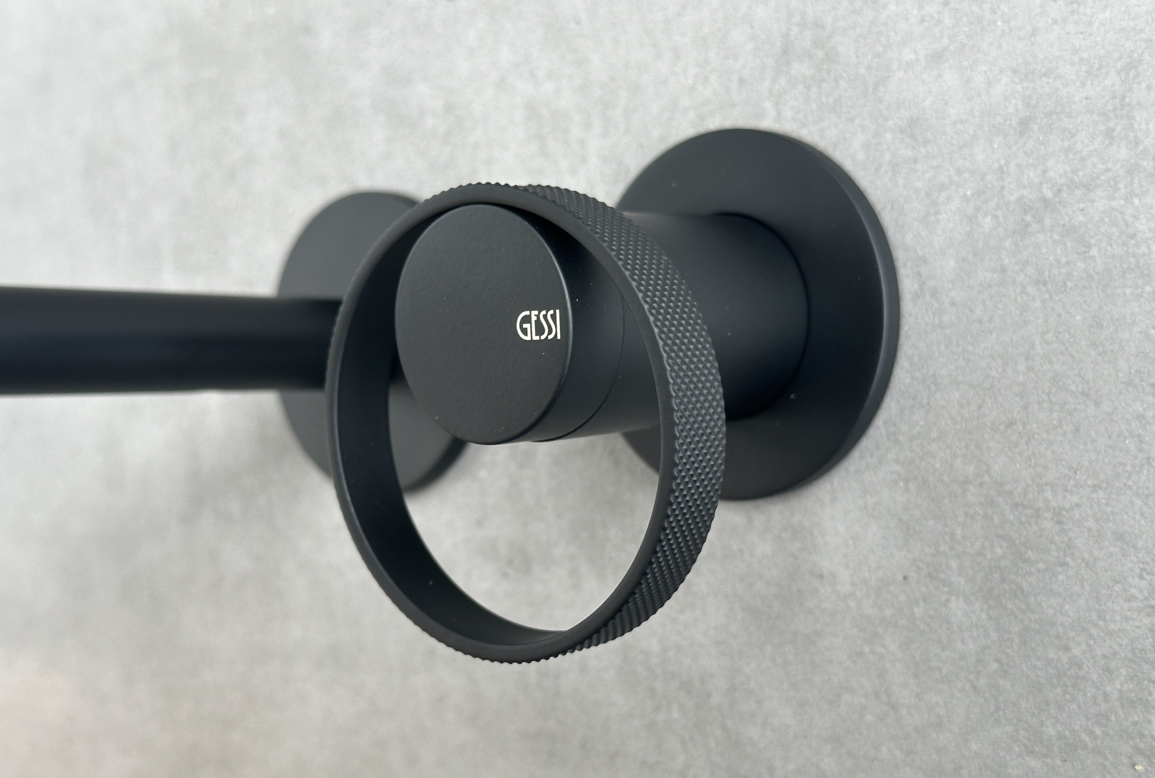 Gessi Anello Bateria umywalkowa ścienna z długą wylewką bez korka część zewnętrzna matte black 63383.299