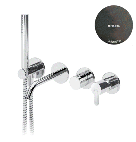 Bruma Leaf Bateria wannowo-natryskowa podtynkowa z wylewką gunmetal 1672110MGZestaw prysznicowy serii EloKolor: GunmetalIstnieje możliwość zamówienia zestawu w kolorze: