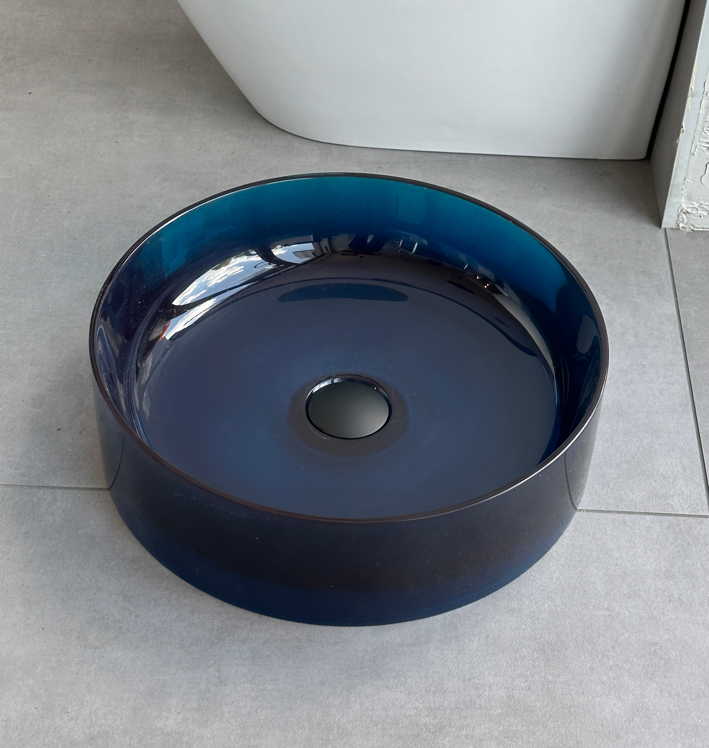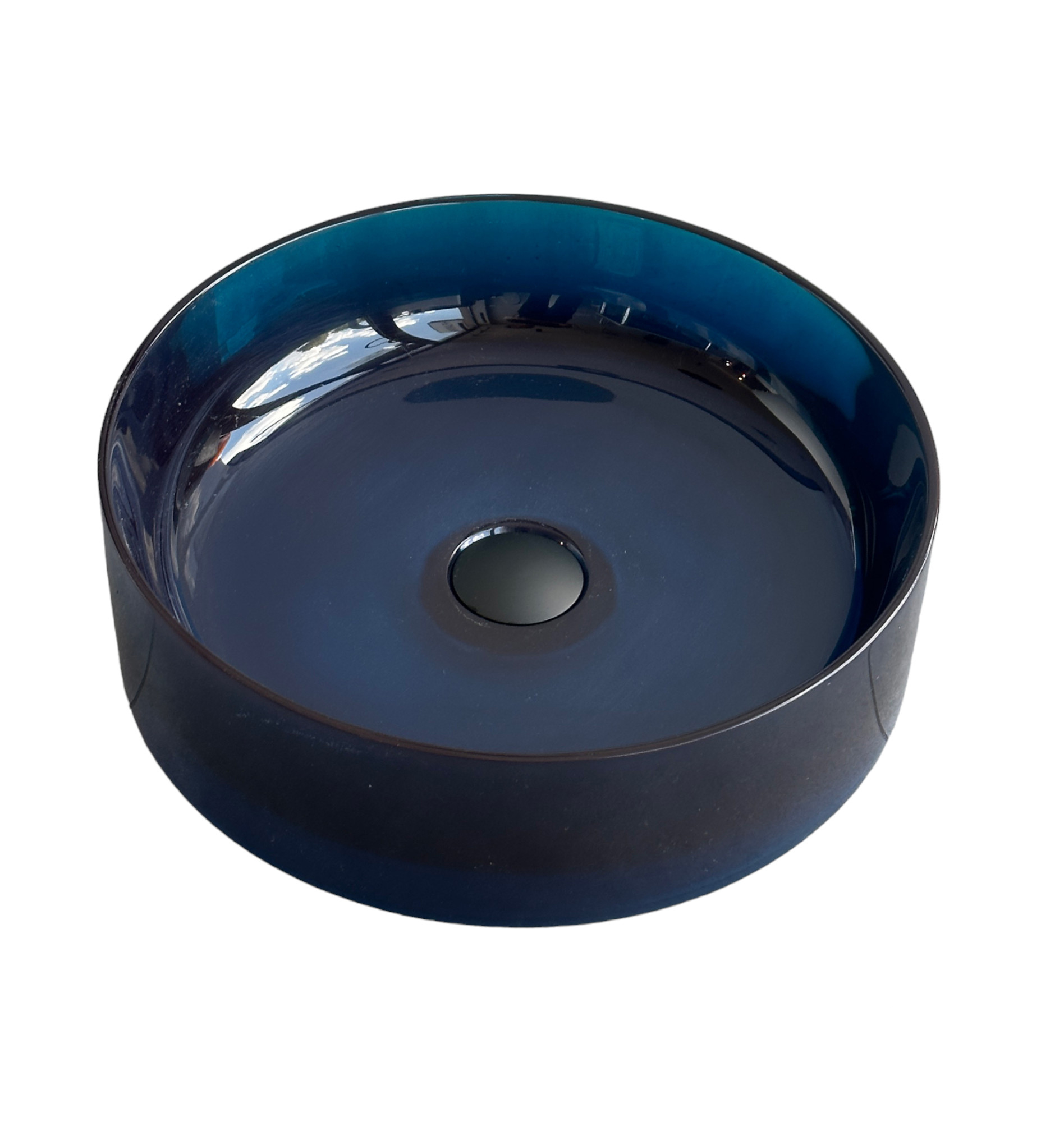 Galatea Design Tondo Umywalka ∅40 blue z korkiem klik klak black matt GDFU2018BL