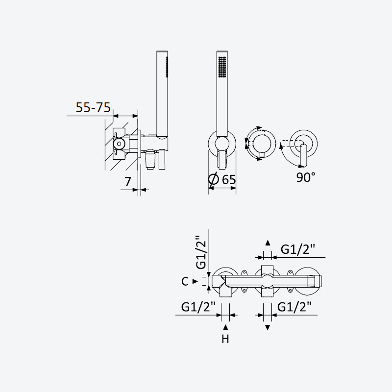 Głębokość montażu: 55 - 75 mm