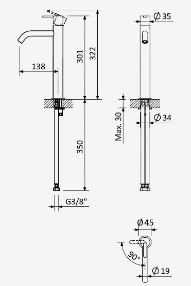 Wysięg wylewki: 13,8 cm
