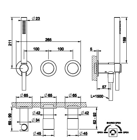 Gessi Habito Bateria prysznicowa z przełącznikiem 2-drożnym ze słuchawką i wężem element zewnętrzny copper brushed PVD 70638.708