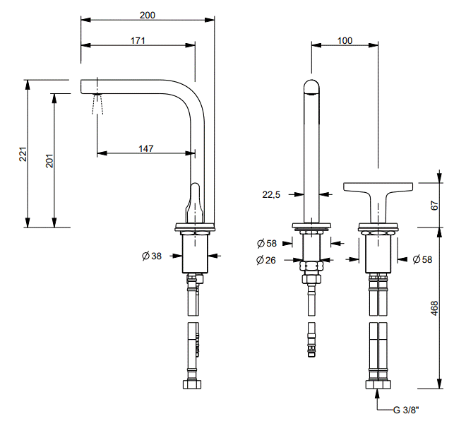 Fantini Sailing Bateria umywalkowa matt gunmetal pvd 67P5J107W