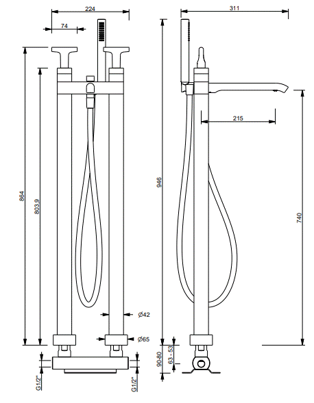 Fantini Sailing Bateria wannowa wolnostojąca podtynkowa matt gunmetal pvd 67P5J080B+19001680A