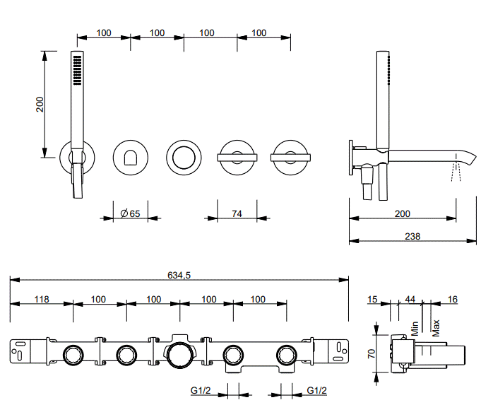 Fantini Sailing Bateria wannowa podtynkowa ze słuchawką i wężem matt gunmetal pvd 67P5J019B+4400R019A