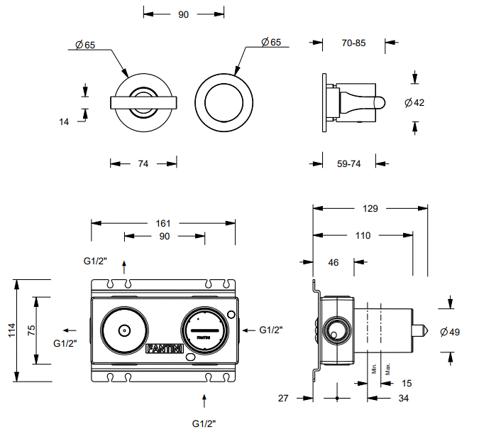 Fantini Sailing Bateria prysznicowa podtynkowa matt gunmetal pvd 67P5J085B+4400M685A