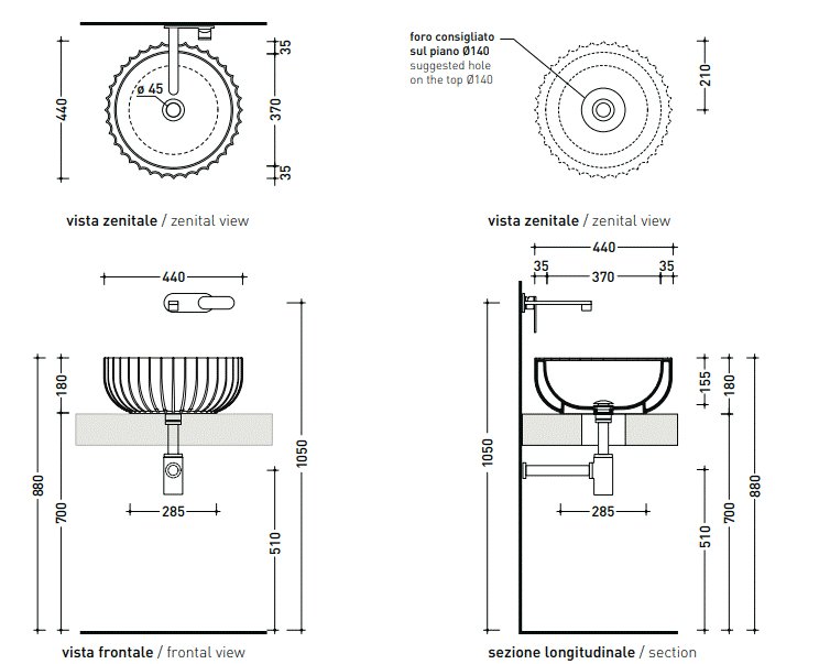 Flaminia Settecento Umywalka Ø44 z postumentem biały mat SE44A+SECOL