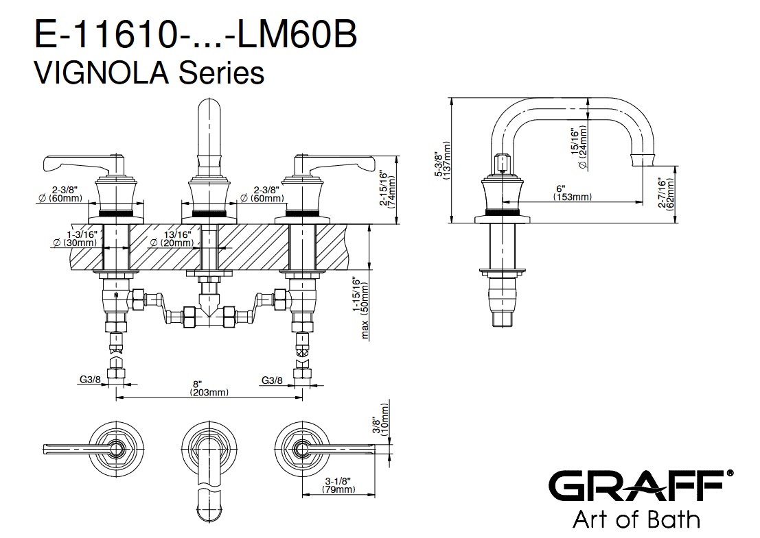 Graff Vignola Bateria umywalkowa 3-otworowa Chrom E-11610-R4-LM60B