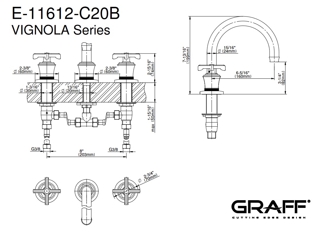 Graff Vignola Bateria umywalkowa 3-otworowa Chrom E-11612-R3-C20B