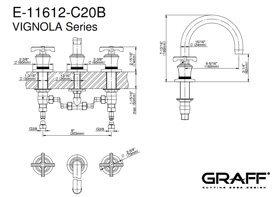 Graff Vignola Bateria umywalkowa 3-otworowa Chrom E-11612-R4-C20B