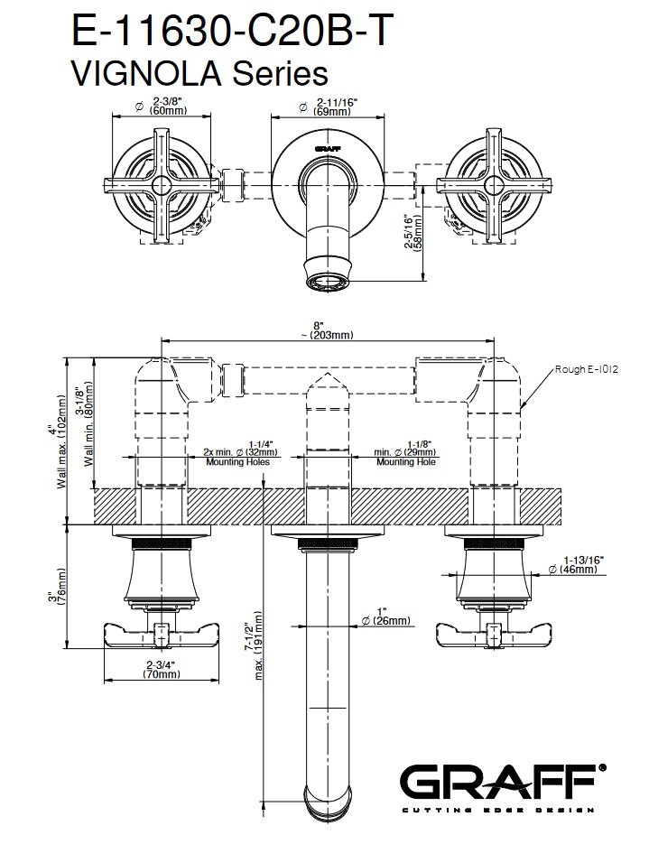 Graff Vignola Bateria umywalkowa podtynkowa 191 mm - element zewnętrzny Chrom E-11630-R4-C20B-T
