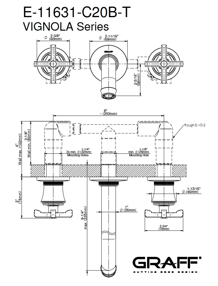 Graff Vignola Bateria umywalkowa podtynkowa 235 mm - element zewnętrzny Chrom E-11631-R4-C20B-T