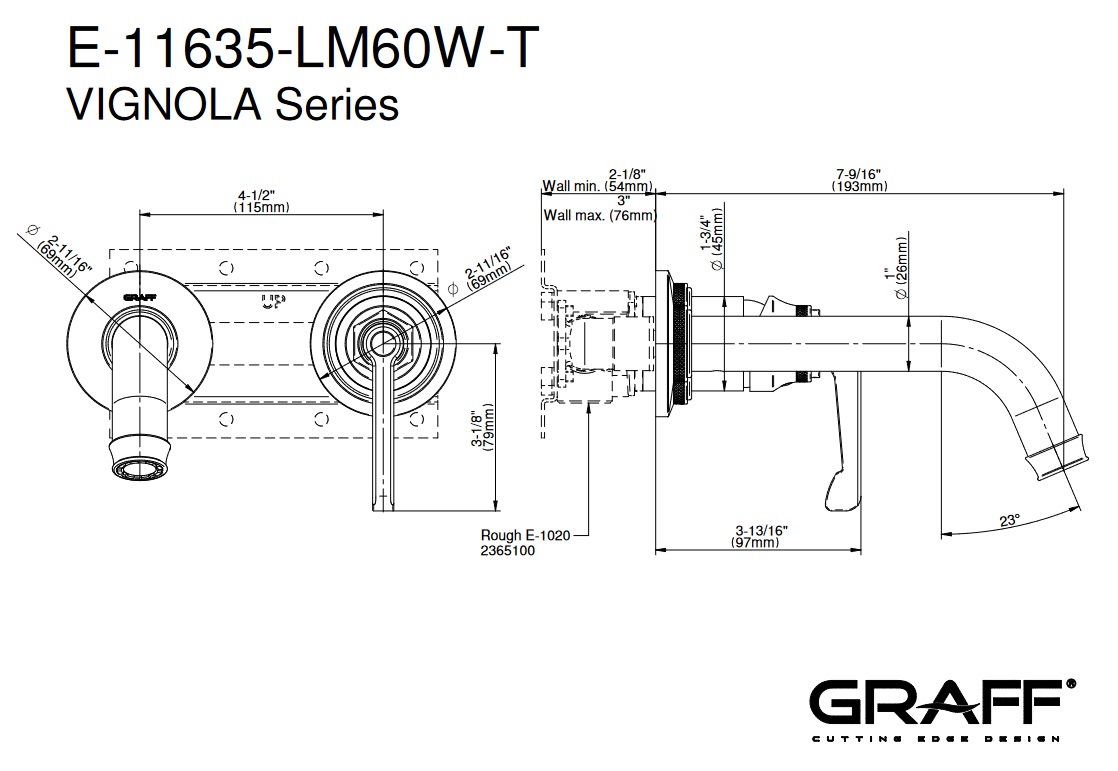 Graff Vignola Bateria umywalkowa podtynkowa 191 mm - element zewnętrzny Chrom E-11635-LM60W-T
