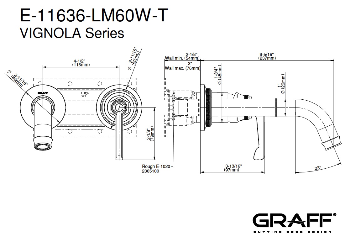Graff Vignola Bateria umywalkowa podtynkowa 235 mm - element zewnętrzny Chrom E-11636-LM60W-T