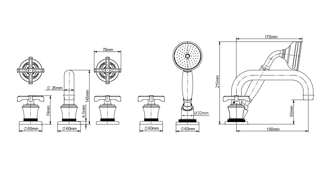 Graff Vignola Bateria wannowa 5-otworowa z zestawem prysznicowym Chrom E-11651-R3-C20B