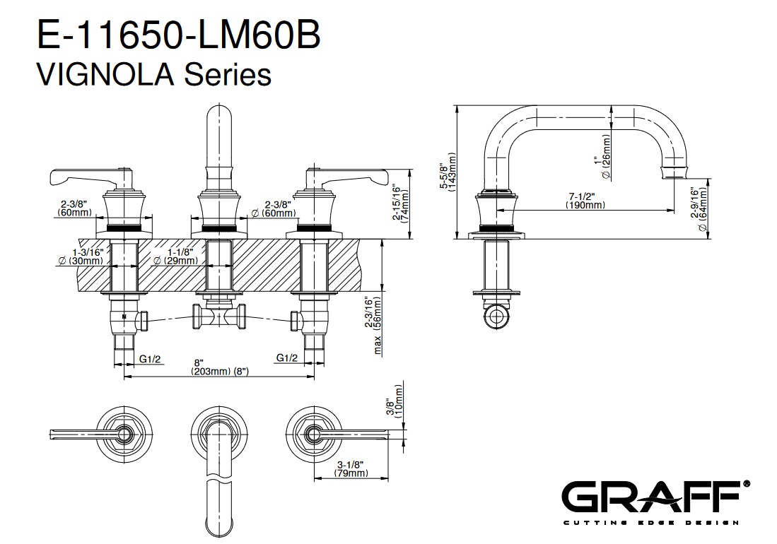 Graff Vignola Bateria wannowa 3-otworowa Chrom E-11650-R3-LM60B