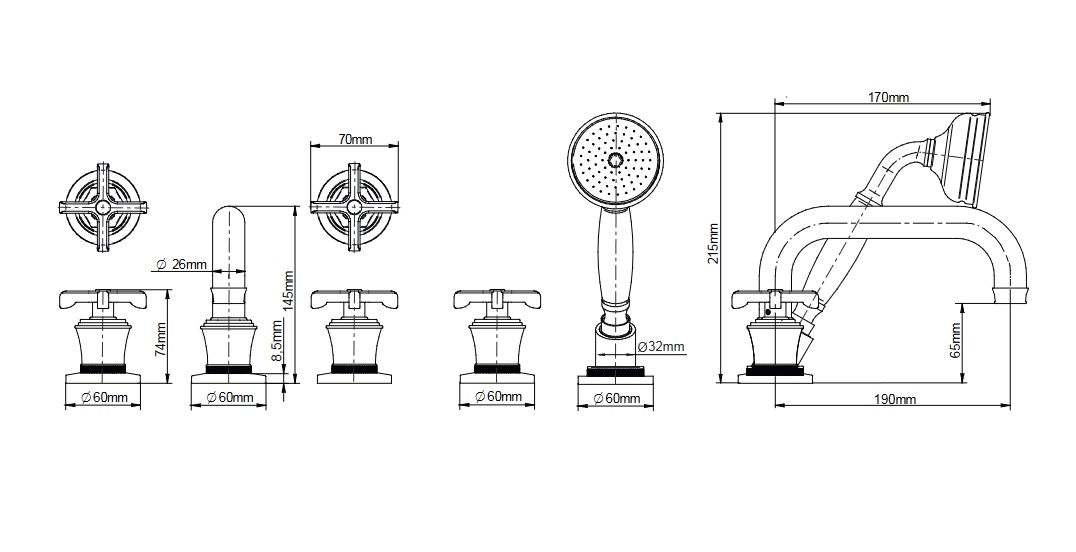 Graff Vignola Bateria wannowa 5-otworowa z zestawem prysznicowym Chrom E-11651-R4-C20B