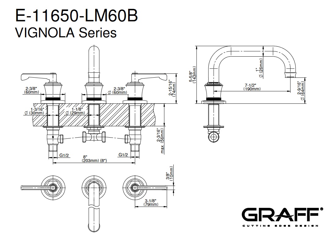 Graff Vignola Bateria wannowa 3-otworowa Chrom E-11650-R4-LM60B