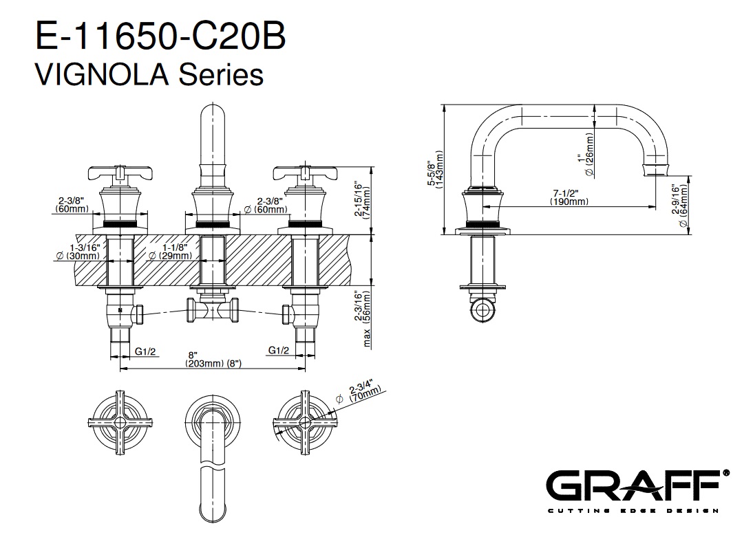Graff Vignola Bateria wannowa 3-otworowa Chrom E-11650-R4-C20B