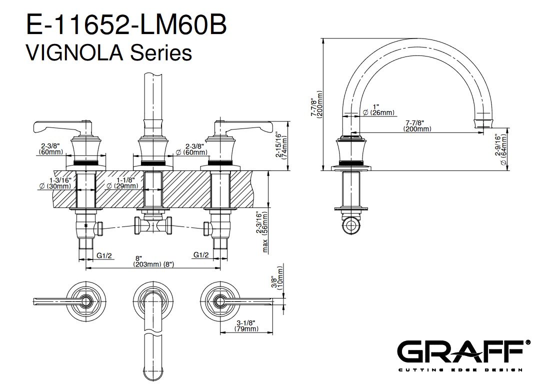 Graff Vignola Bateria wannowa 3-otworowa Chrom E-11652-R4-LM60B