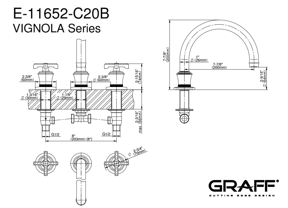Graff Vignola Bateria wannowa 3-otworowa Chrom E-11652-R4-C20B