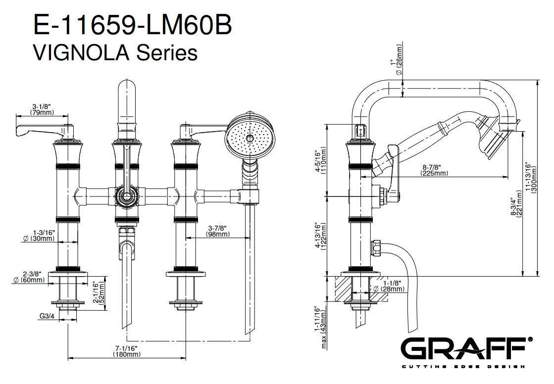 Graff Vignola Bateria wannowa nablatowa z zestawem prysznicowym Chrom E-11659-R3-LM60B