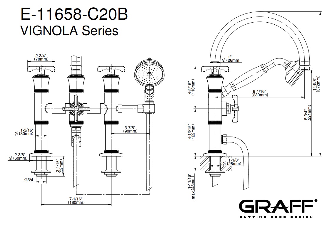 Graff Vignola Bateria wannowa nablatowa z zestawem prysznicowym Chrom E-11658-R4-C20B