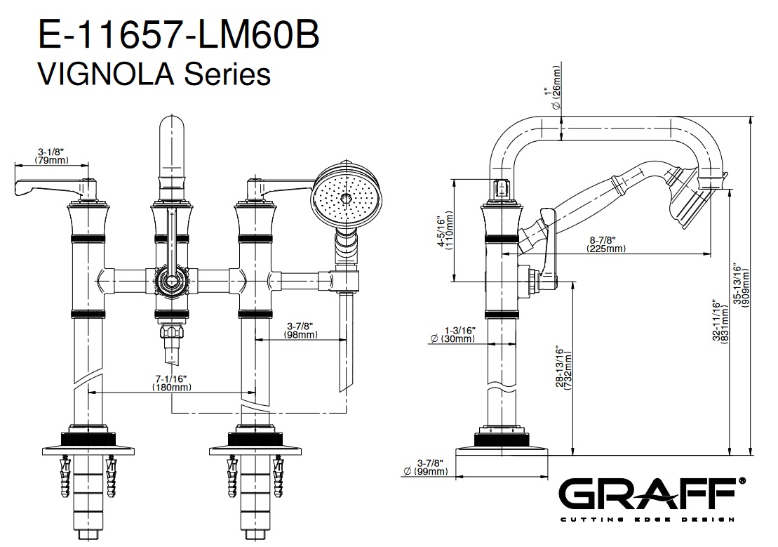 Graff Vignola Bateria wannowa wolnostojąca z zestawem prysznicowym Chrom E-11657-R3-LM60B