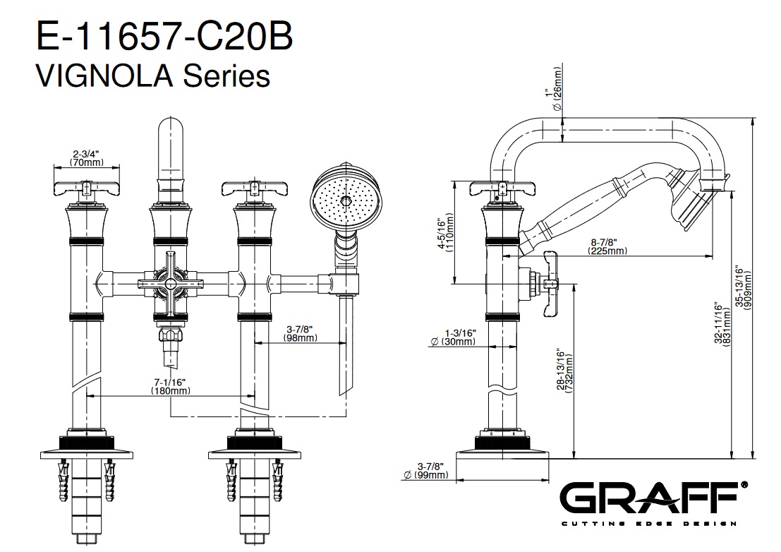 Graff Vignola Bateria wannowa wolnostojąca z zestawem prysznicowym Chrom E-11657-R4-C20B